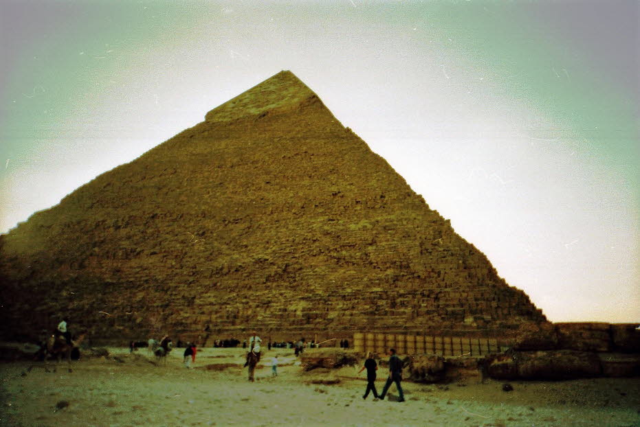 Die Cheops-Pyramide ist vielleicht das kolossalste Einzelgebäude, das jemals auf dem Planeten errichtet wurde. Seine Seiten erheben sich in einem Winkel von 51°52' und sind genau auf die vier Himmelsrichtungen ausgerichtet. Der Kern der Großen Pyramide besteht aus gelblichen Kalksteinblöcken, die äußere Hülle (jetzt fast vollständig verschwunden) und die inneren Gänge sind aus feineren hellen Kalksteinen und die innere Grabkammer besteht aus riesigen Granitblöcken. Ungefähr 2,3 Millionen Steinblöcke wurden geschnitten, transportiert und zusammengebaut, um die 5,75 Millionen Tonnen schwere Struktur zu schaffen, die ein Meisterwerk an technischem Können und Ingenieurskunst ist. Sowohl die Innenwände als auch die wenigen noch erhaltenen Außenmantelsteine weisen feinere Fugen auf als jedes andere im alten Ägypten errichtete Mauerwerk.