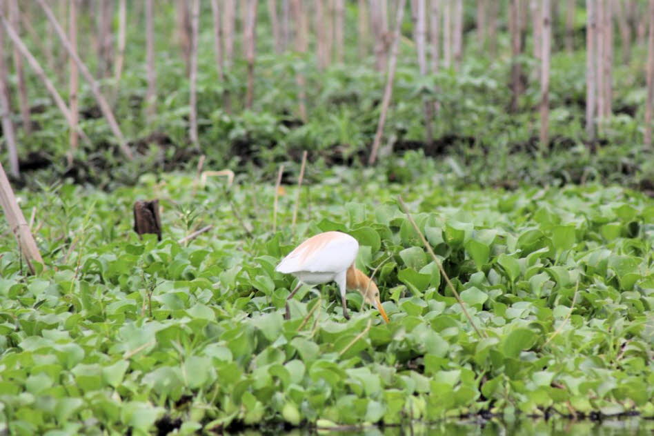 Kuhreiher sind ca. 50 cm kleine Reiher, die ursprünglich nur in der "alten Welt" lebten, im Laufe des 20. Jahrhunderts haben sie sich fast weltweit ausgebreitet. Kuhreiher machen gern die wildesten Verrenkungen, während sie auf den Weidetieren reiten oder sie "verfolgen" die Bauern bei der Feldarbeit - und sie haben dabei gerne Publikum. Sie sind die Clowns der Vogelwelt.