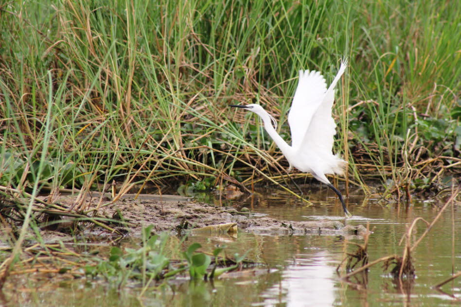 Silberreiher sind so groß wie Graureiher, sind sie jedoch schlanker, haben einen besonders langen Hals und erscheinen dadurch noch graziler als Graureiher.